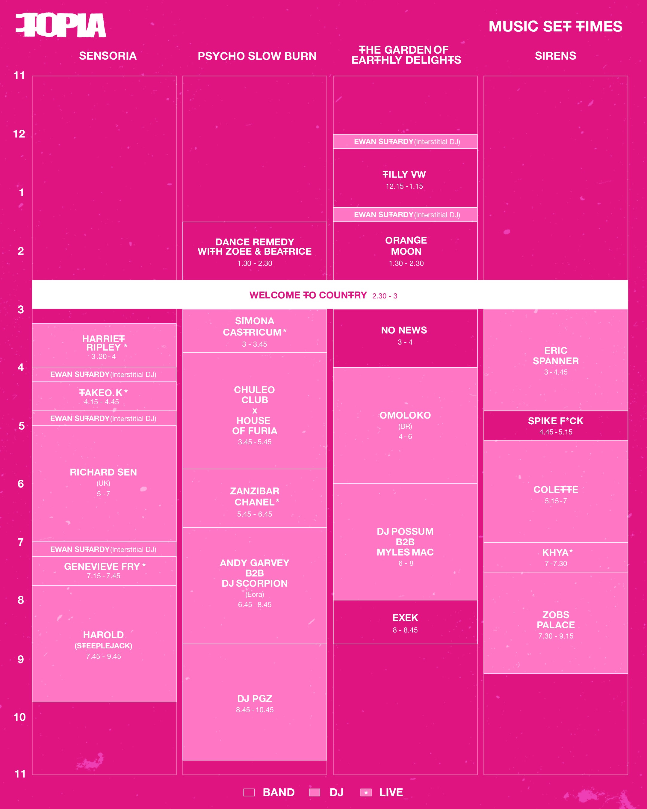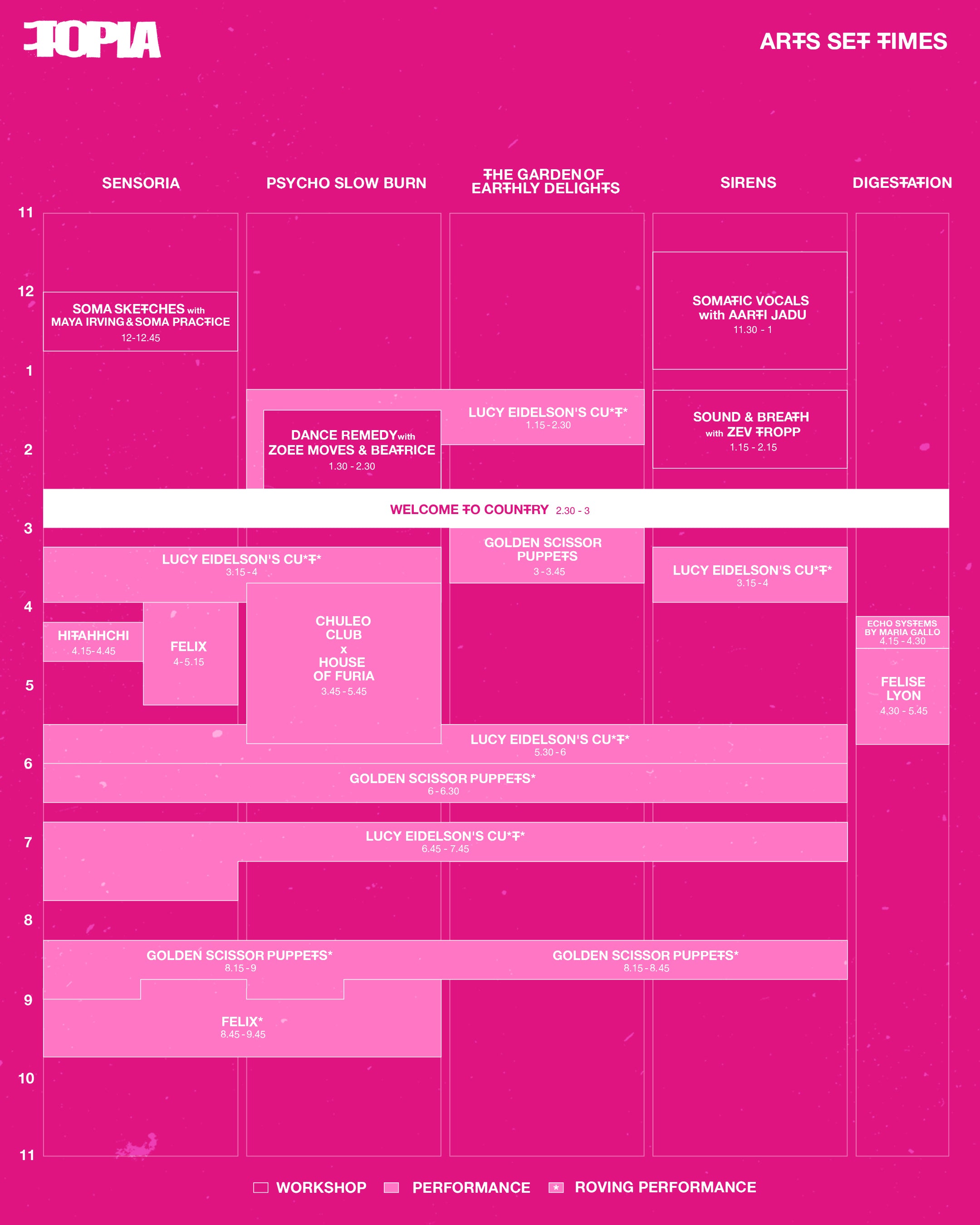 Free water stations and cups are available at all bars. Please stay hydrated and look after yourselves and one another – magic flows when we’re all feeling our best.